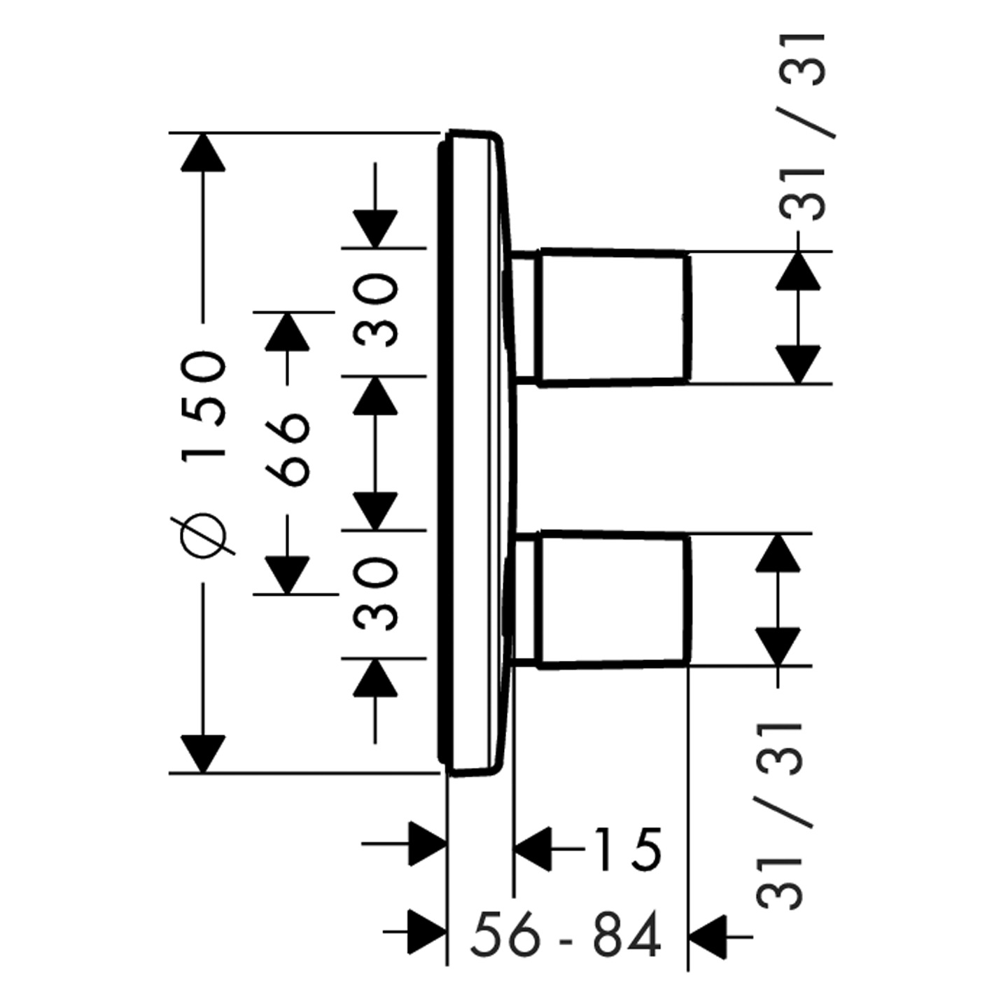 MetrisiControl Set de finition encastré E avec robinet d'arrêt et inverseur